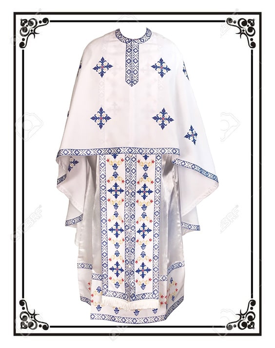 Veșmintele preoțești pot fi realizate pe mai multe culori: alb, ivoire, crem, verde deschis, verde închis, roșu, grena, bleu, albastru, două nuanțe de mov și negru. Astfel, fiecare preot își poate alege culoarea potrivită fiecărei perioade liturgice.