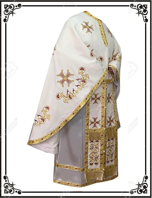 Broderiile cu motive bizantine adaugă profunzime spirituală. Ele transformă fiecare piesă într-un simbol al credinței și al demnității liturgice.