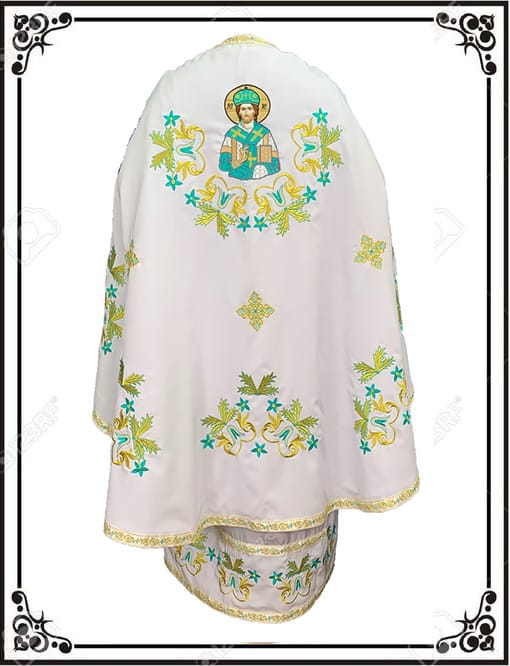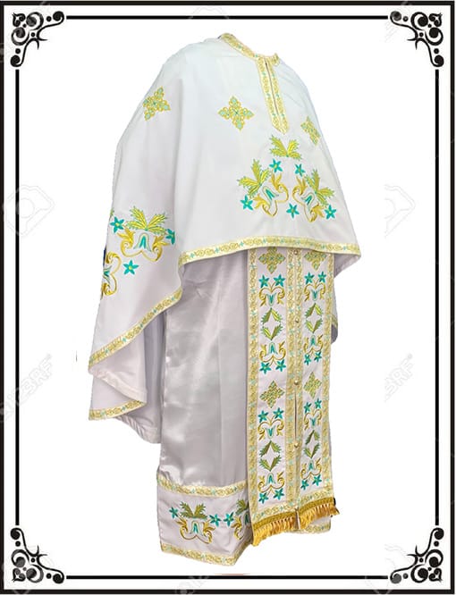 Veșmânt preot creat pentru a reflecta excelența și solemnitatea liturgică. Fiecare piesă este realizată din materiale atent selecționate.